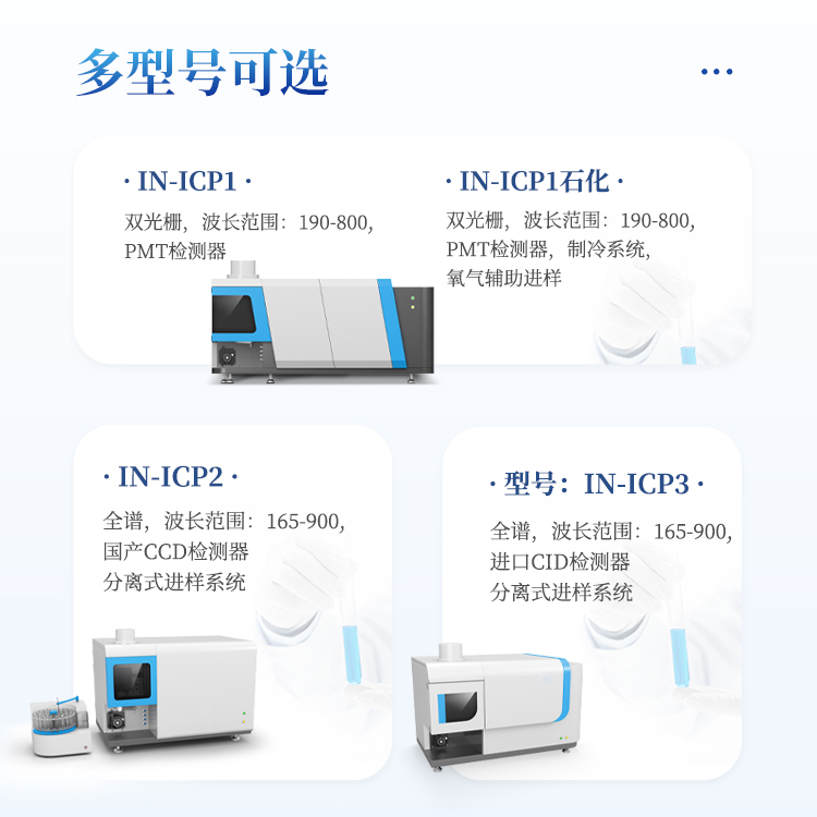 电感耦合等离子体发射光谱仪是以高灵敏度光电倍增管为检测器的微量元素成分分析测试仪,测试近70余种元素,拥有固态射频发生器、自动调谐匹配技术;配置专用循环冷却水系统、氩气导管、冷却水管、高灵敏度进样系统(高效雾化器加双筒型雾化室)。