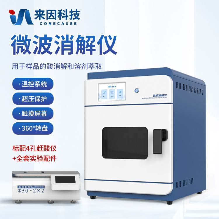 简要描述: 微波消解仪是一种用于样品前处理的设备,通过微波加热技术对样品进行快速、有效的消解。该仪器广泛应用于食品、环境保护、疾病控制、质量监督、商品检验、科研院所等领域,特别适用于各种样品的酸消解和溶剂萃取。